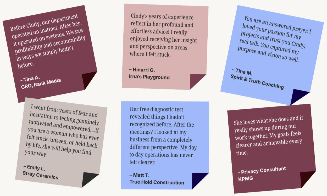 I’m the person people call when their business starts to outgrow its systems, more hours isn't equating to more revenue, or they feel stuck but can’t quite name the reason. I'll guide you back to confident ownership again.